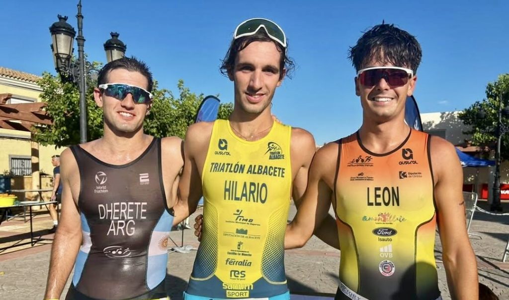 Le acompañaron en el podio masculino el argentino Gerónimo Dhereté (Club Triatlón Albacete RES), segundo clasificado, y Pablo León Marín (Montilla-Córdoba Triatlón), que cerró el trío de cabeza.