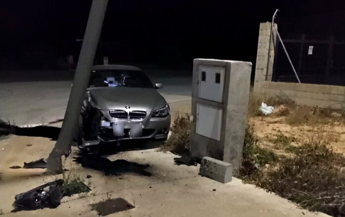 Los hechos tuvieron lugar durante la madrugada del 18 al 19 de abril, después de que la central de comunicaciones recibiera un aviso alertando de la presencia de un vehículo accidentado en la vía pública. A su llegada, los agentes comprobaron que el coche se encontraba parcialmente subido a la acera y presentaba daños compatibles con un impacto contra una farola.