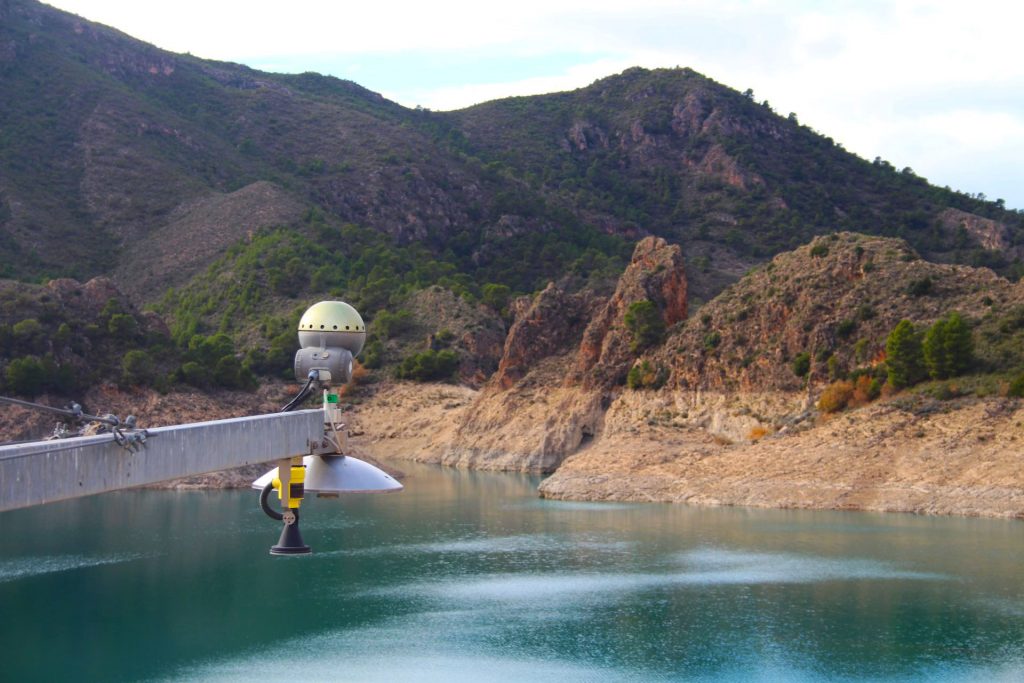 Fotografía de un punto SAIH operativo en el embalse del Cenajo.