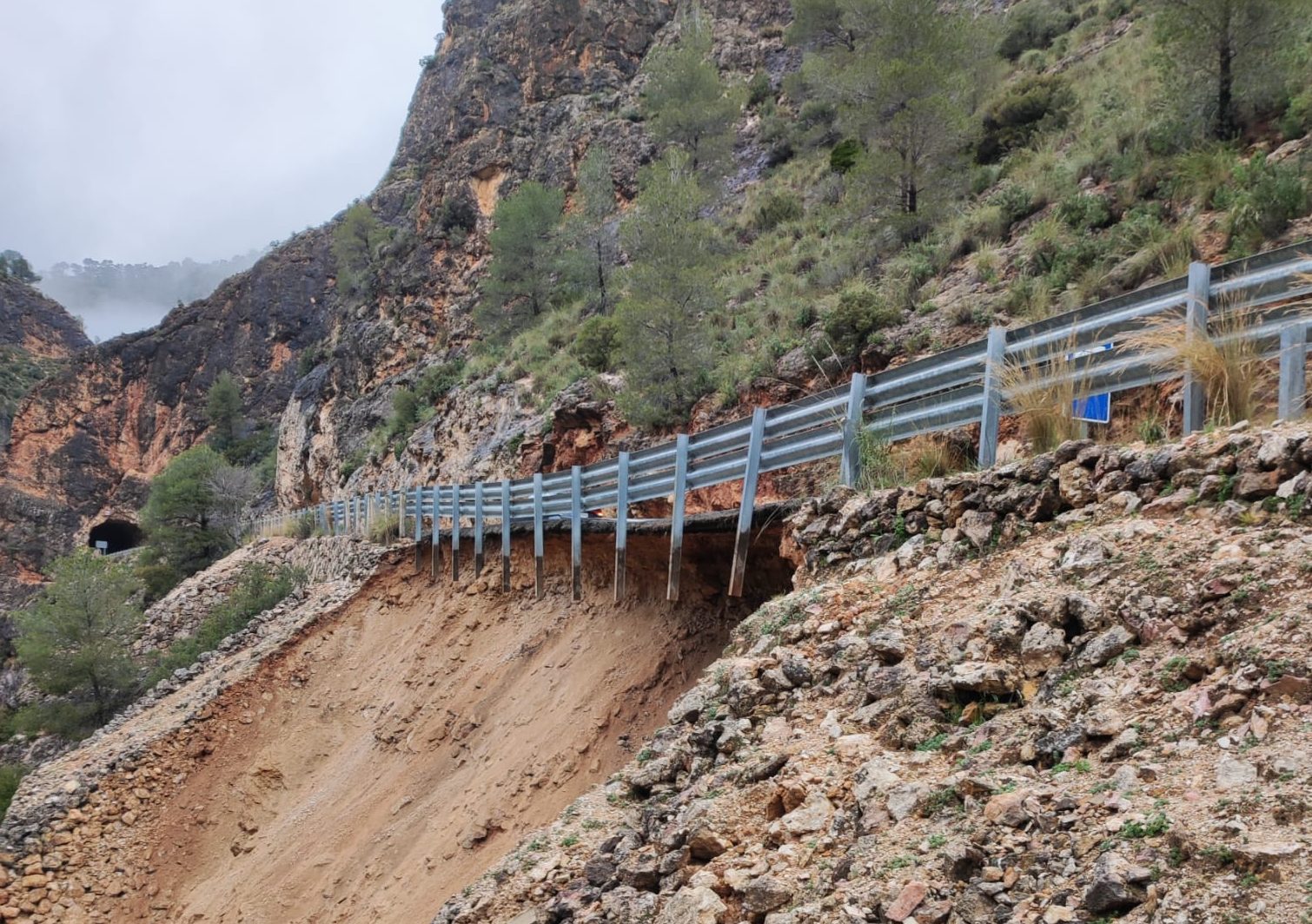 La carretera CM-3203 permanece cerrada en ambos sentidos a la altura del punto kilométrico 60, en el término municipal de Aýna, tras el colapso parcial de un muro de contención debido a las recientes lluvias.