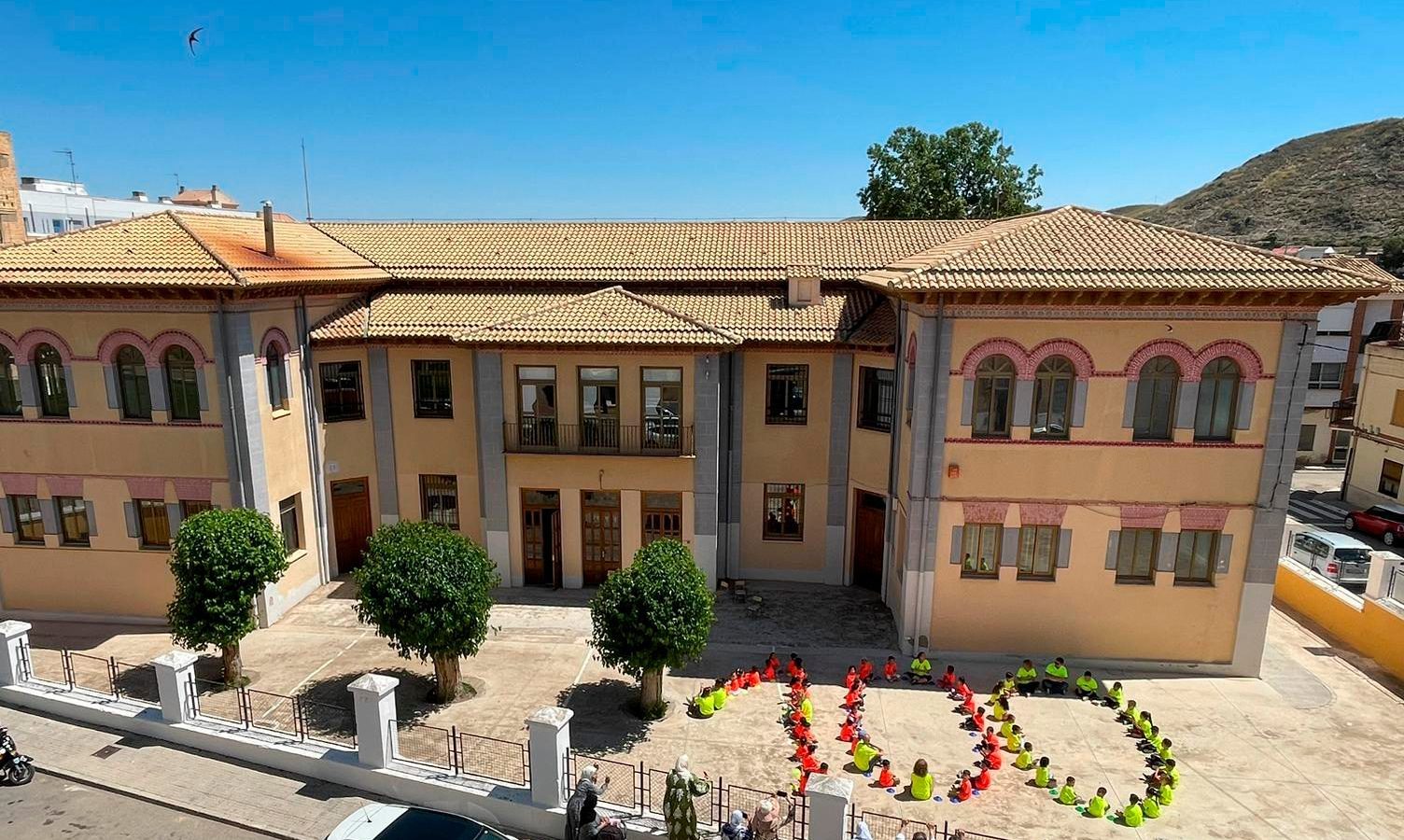 Como broche final, los patios de Infantil y Primaria se han convertido en un escenario colectivo para una coreografía simbólica: los alumnos, coordinados, han formado las cifras 100 y 90, en un gesto visual cargado de emoción y orgullo.