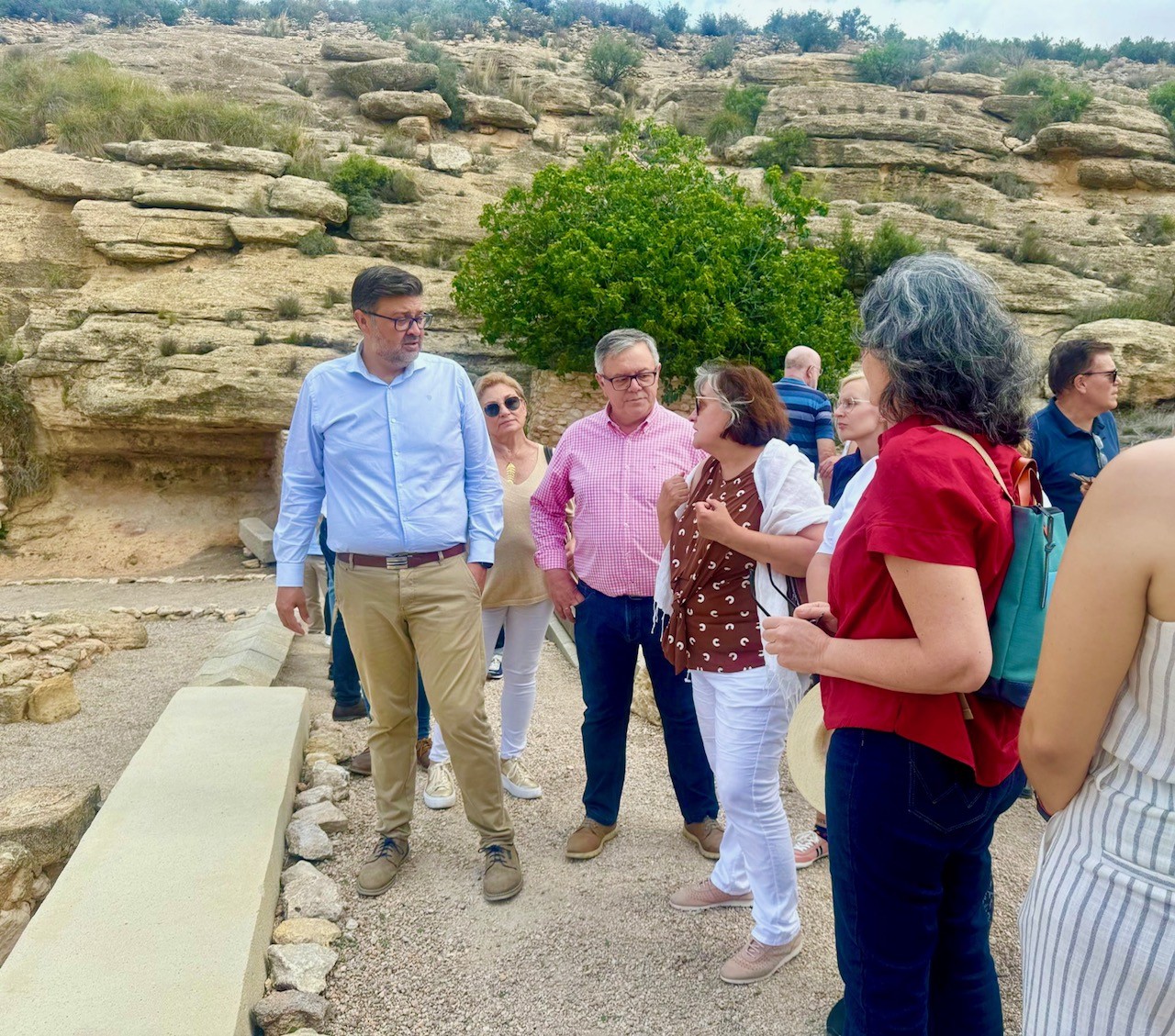 Durante su visita al Tolmo de Minateda en Hellín, Pastor estuvo acompañado por varias autoridades locales y regionales, entre ellas la viceconsejera de Cultura y Deportes, Carmen Teresa Olmedo, y el alcalde de Hellín, Manuel Serena.