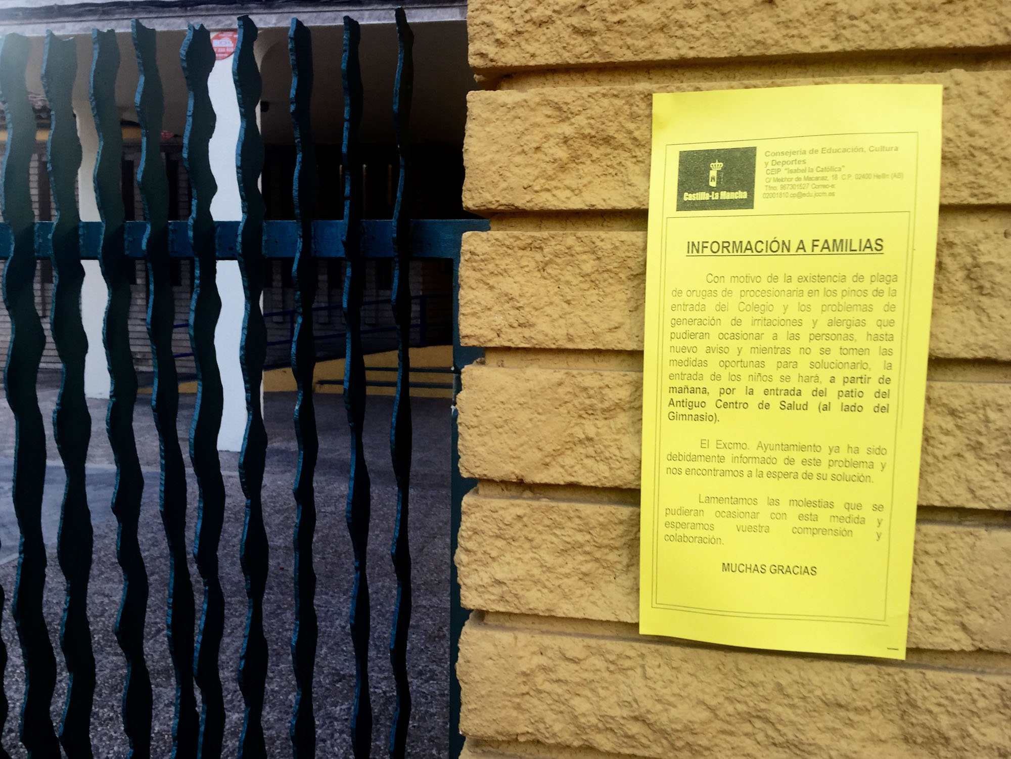 Asimismo añaden que le consta que desde este mismo centro de enseñanza se ha solicitado la intervención del Ayuntamiento para atajar este problema desde hace semanas, no siendo atendida en ningún caso, lo que ha provocado que las “bolsas” que contienen las orugas, hayan eclosionado y por lo tanto, provocado las reacciones alérgicas.