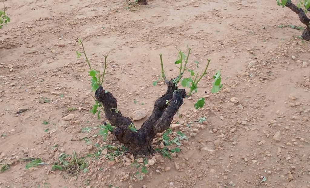 El daño más visible se ha producido en las vías recién brotadas, cuyo follaje y brotes han quedado destruidos en gran parte. Aunque algunas plantas podrían rebrotar, los viticultores coinciden en que “la cosecha está prácticamente perdida”. Desde COAG Jumilla advierten también de los graves daños en infraestructuras, especialmente en parcelas de pendiente acusada, donde se han producido arrastres de tierra y pérdida de la capa fértil.