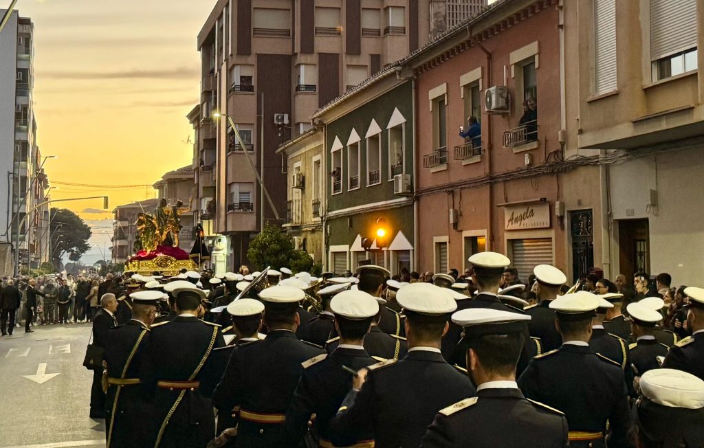 Un elemento destacado del acto fue el sublime acompañamiento musical a cargo de la Banda de Cornetas y Tambores Santísimo Cristo de las Tres Caídas de Triana. Con paso firme y en perfecta formación, esta agrupación emblemática de la Semana Santa sevillana ofreció una interpretación de alto nivel que elevó la solemnidad de la procesión. La calidad artística de la banda atrajo a un numeroso público, entre el que se destacó la presencia de numerosos visitantes foráneos, en especial sevillanos, quienes acudieron para presenciar la fusión de dos de las mejores tradiciones de Semana Santa de España: Hellín y Sevilla.