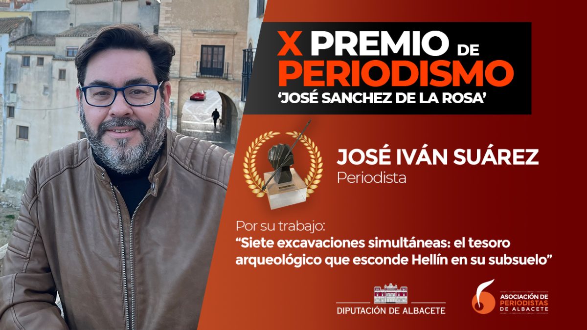 El reportaje “Siete excavaciones simultáneas: el tesoro arqueológico que esconde Hellín en su subsuelo” del periodista José Iván Suárez ha sido galardonado con el X Premio de Periodismo ‘José Sánchez de la Rosa’. El trabajo se centra en la riqueza arqueológica de la comarca de Hellín, la que más investigaciones arqueológicas atesora en Castilla-La Mancha, y ofrece una detallada descripción de los hallazgos realizados en los últimos años.