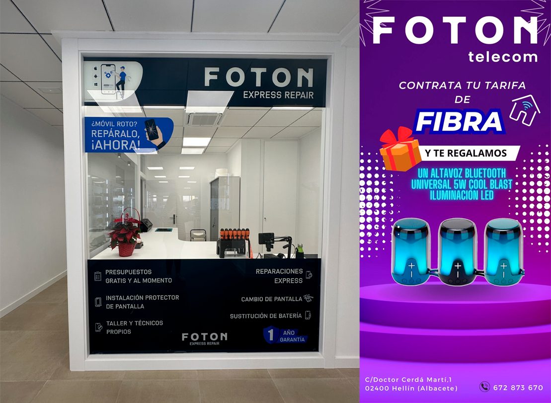 Fotón Telecom Hellín, líder en servicios de telecomunicaciones, anuncia una emocionante oferta para sus clientes. Al mejorar tu tarifa de fibra, recibirás como regalo un moderno altavoz inalámbrico con iluminación LED. Esta oferta exclusiva es una manera de agradecer a los clientes su lealtad y brindarles una experiencia mejorada en conectividad.