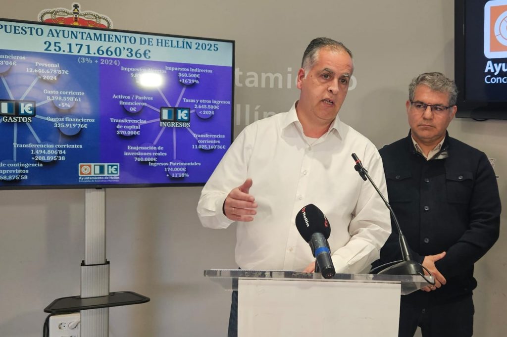 El concejal de Economía y Hacienda, Pedro García, fue el encargado de dar a conocer los Presupuestos Generales del Ayuntamiento de Hellín para el año 2025, que se elevan a 25.171.660,36 euros, lo que supone un aumento del 3% con respecto al ejercicio anterior.