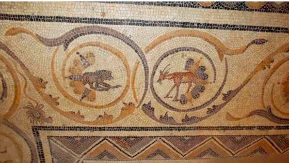 La orla de animales diversos que hizo suponer en nuestra primera visita la existencia de un tapiz central, pasaba en la segunda a ser el principal asunto, ya que el rectángulo, en torno al torno en que se desenvuelven las diferentes orlas, acusa parte de un impluvium, debiéndose encontrar lo que de él falta y de la ornamentación bajo los acarreos no removidos.