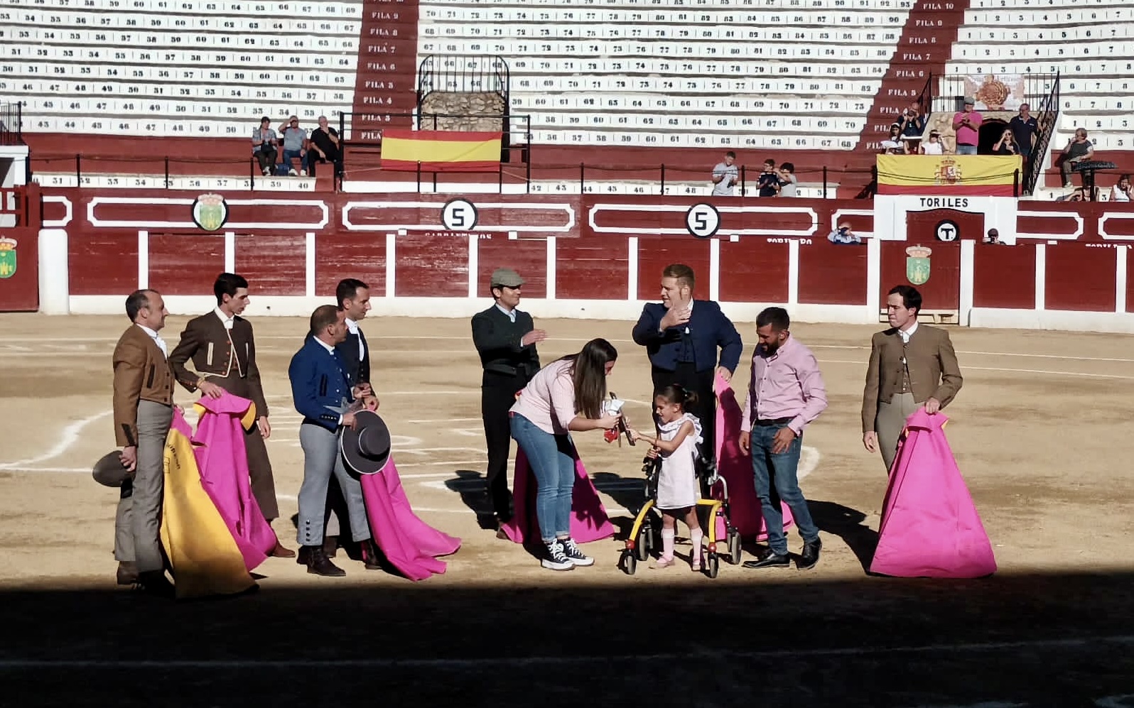 El sexto novillo fue un regalo de los actuantes, y lo lidiaron al compás, siendo Manuel Cuenca quien realizó la labor con la muleta. Nuevamente, el fallo en el pincho le impidió el éxito. Fue ovacionado por todos los actuantes y dieron una vuelta al ruedo, con la niña Triana como protagonista de la tarde.