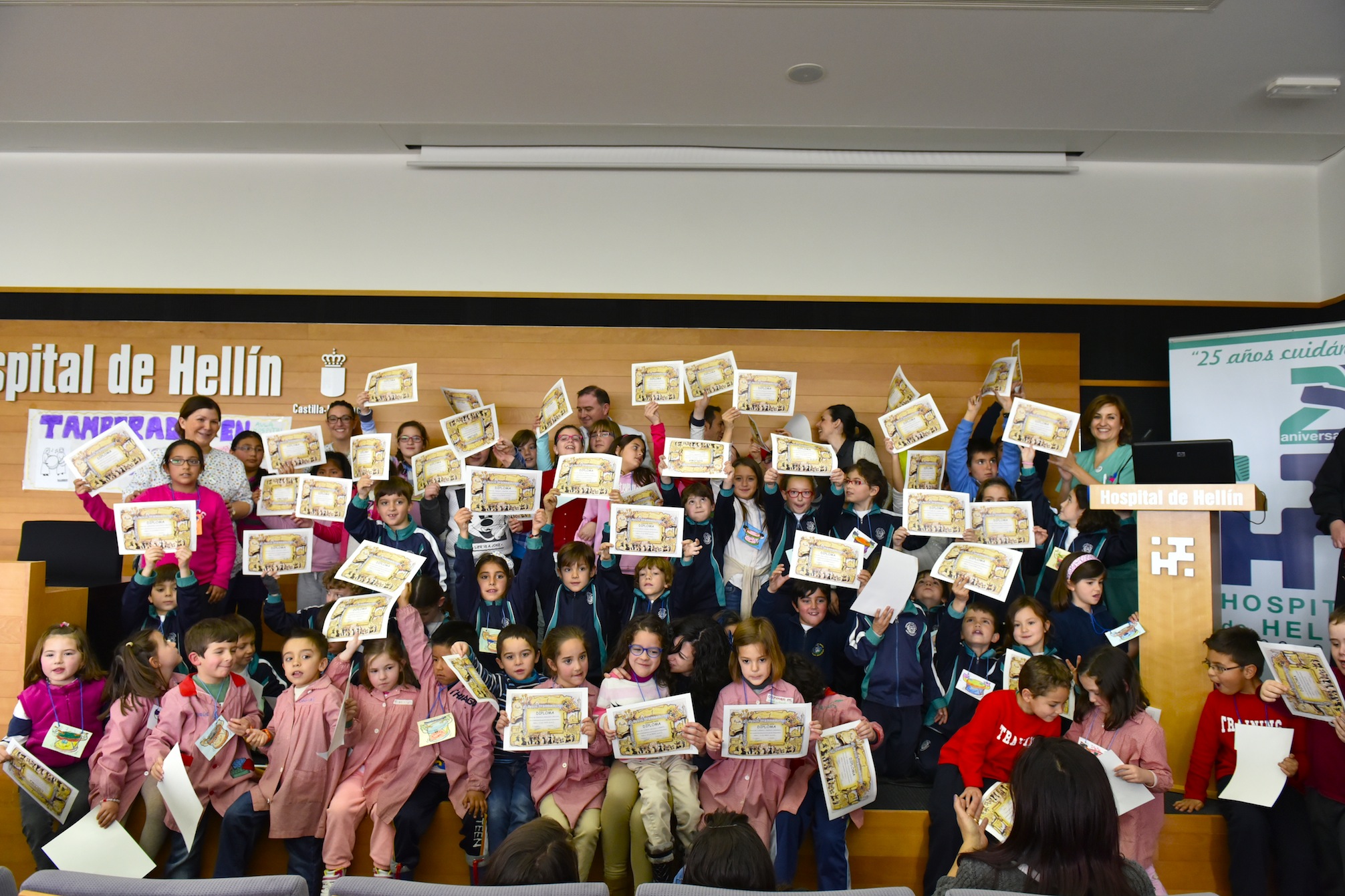 Luis González, gerente del Hospital de Hellín, entregó los premios al mejor tambor a Carlos Rubio Palacios, de 6 años, y a Marian Nexans Carrió, de 5 años; estuvieron acompañadas durante toda la jornada por sus compañeros de colegio.