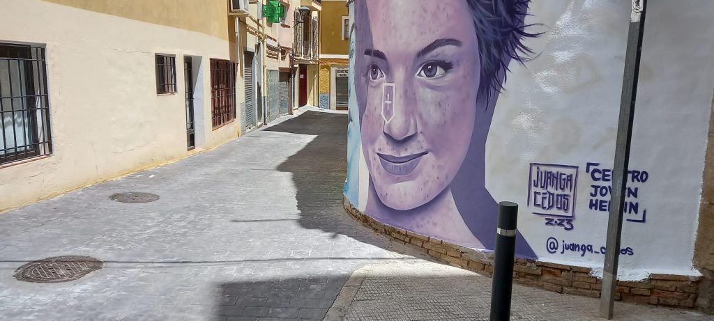 Este graffiti, situado en la calle Bachiller, fue elegido a través de un concurso realizado por el Ayuntamiento de Hellín, al cual este colectivo quiere agradecer su labor por visibilizar al colectivo y luchar por la dignidad.