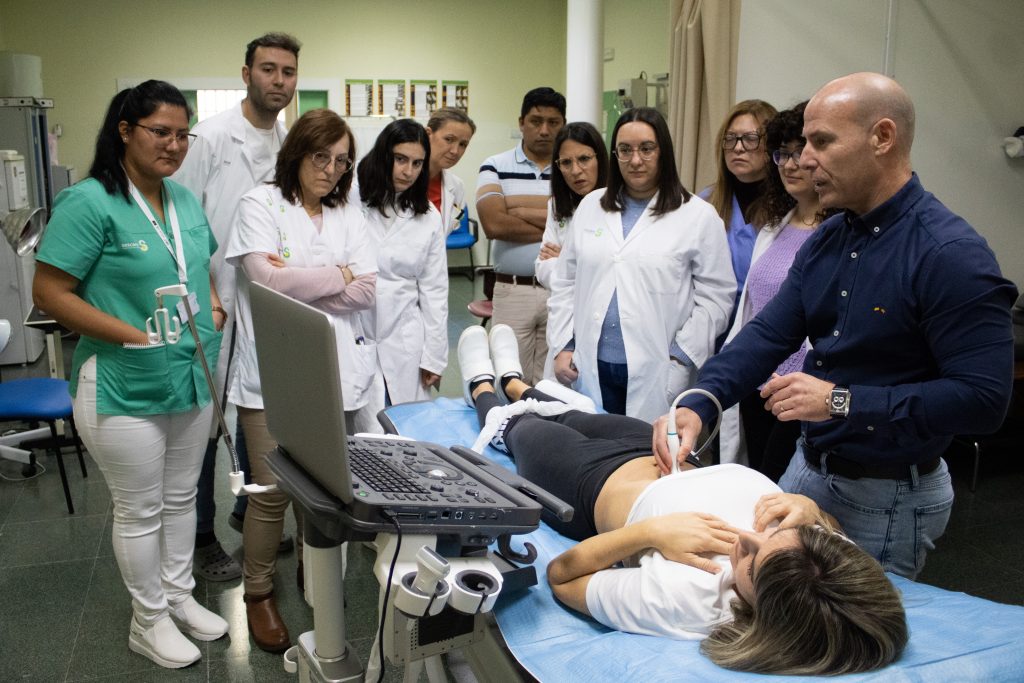 Los talleres incluyen módulos sobre valoración abdominal, cardíaca, pulmonar y del sistema venoso, además de formación específica en valoración musculoesquelética para fisioterapeutas y acceso venoso periférico ecoguiado para enfermería.