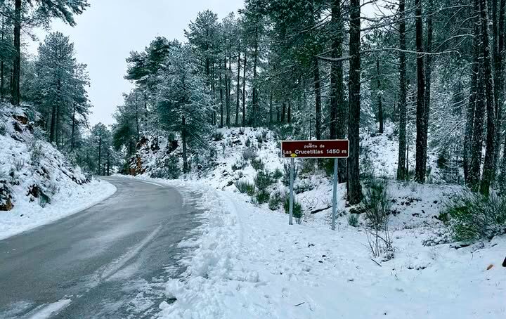 La nieve ha hecho acto de presencia durante la madrugada de este martes en distintos puntos de la provincia de Albacete, especialmente en la zona de la Sierra del Segura, donde varias carreteras presentan acumulaciones de nieve.
