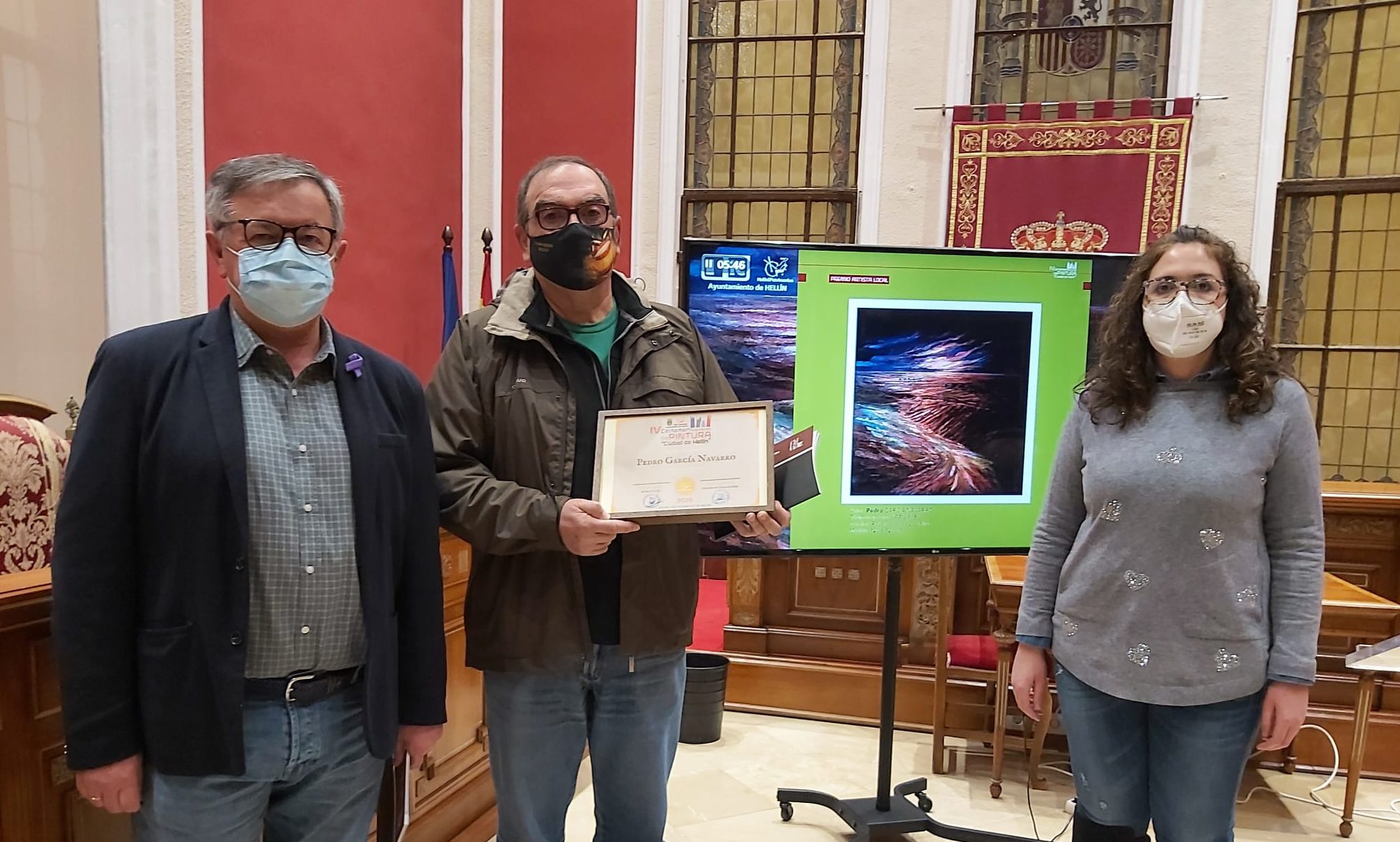La entrega del IV Certamen Nacional de Pintura “Ciudad de Hellín” se llevó a cabo en la lluviosa mañana del viernes, día 27 de noviembre, en un salón de sesiones de la Casa Consistorial donde, por las circunstancias especiales que existen, los principales protagonistas del acto, es decir los pintores que han conseguido premios y menciones o simplemente haber tenido el gusto de que su obra fuera seleccionada para ser expuesta en la muestra, que para mayor inri tampoco se pudo realizar, tuvieron una mínima representación.
