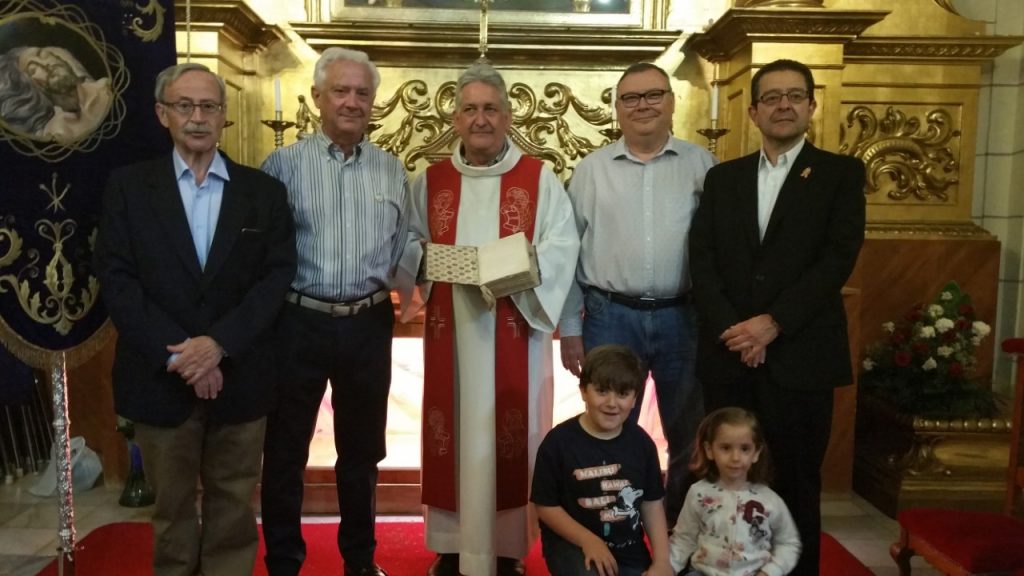 En un acto sencillo, realizado en la Capilla de Ntra. Sra. de los Dolores, al que asistían el donante de este interesantísimo ejemplar, José Albertos, y el cura párroco Ricardo Magro, en representación del consejo parroquial de pastoral, éste recibió el citado Misal en presencia del presidente de la ACH, Francisco Juárez, y el presidente y vicepresidente de la Hermandad del Cristo Yacente, Vicente Mas y Antonio Albertos.