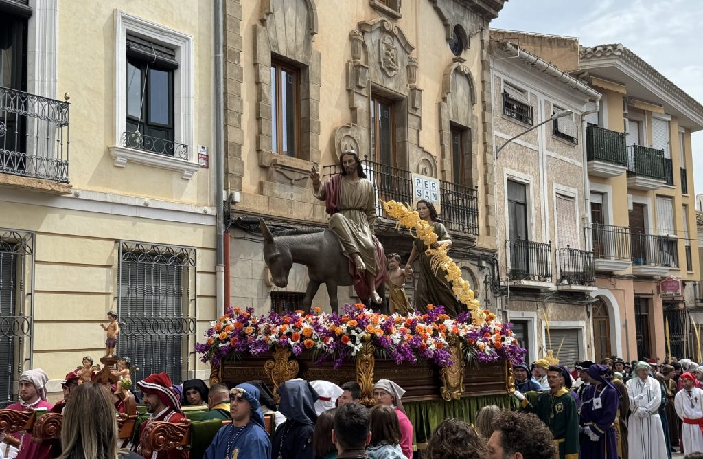 Con una mañana espléndida y un ambiente de entusiasmo generalizado, Hellín vivió este Domingo de Ramos el inicio oficial de su Semana Santa 2025. La tradicional Procesión de las Palmas volvió a llenar las calles de color, solemnidad y emoción con el desfile del paso de La Entrada de Jesús en Jerusalén, conocido popularmente como “La Burrica”.