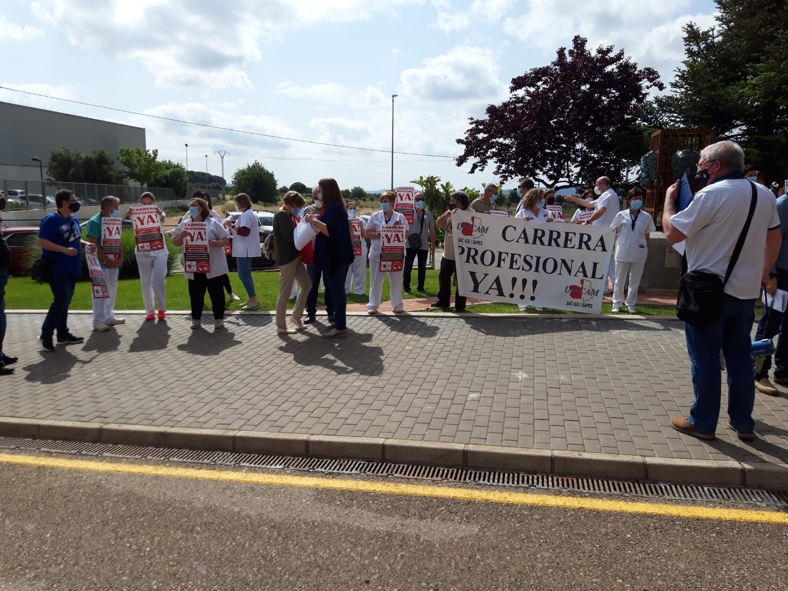Allí, respaldado por más de cien compañeros, Juan Carlos Iniesta, como delegado de USICAM en Hellín, acompañado por el secretario general de CLM, Francisco José Martínez, comenzó indicando que el problema había llegado teniendo como base los recortes que sufrió la clase sanitaria durante el mandato regional de María Dolores Cospedal, al arrebatar una serie de retribuciones, que, algunas, afirmó, se habían ido recuperando durante los últimos diez años, pero el complemento de la carrera estaba sin negociar.