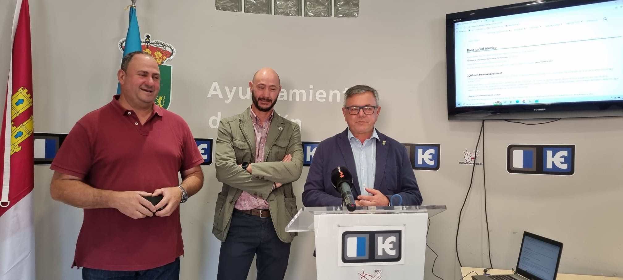 El alcalde de la ciudad, Ramón García, acompañado por el concejal de Medio Ambiente, Julián Martínez, y el director de Consumo de la Junta de Comunidades, Ramón Lara, llevaban a cabo un encuentro con los medios de comunicación para dar una serie de datos positivos de las personas que se han beneficiado en la comarca Campos de Hellín gracias al Bono Social Térmico, activado por la Junta de Comunidades con el fin de compensar el pago del recibo del consumo eléctrico, tras la brutal subida de los últimos meses.