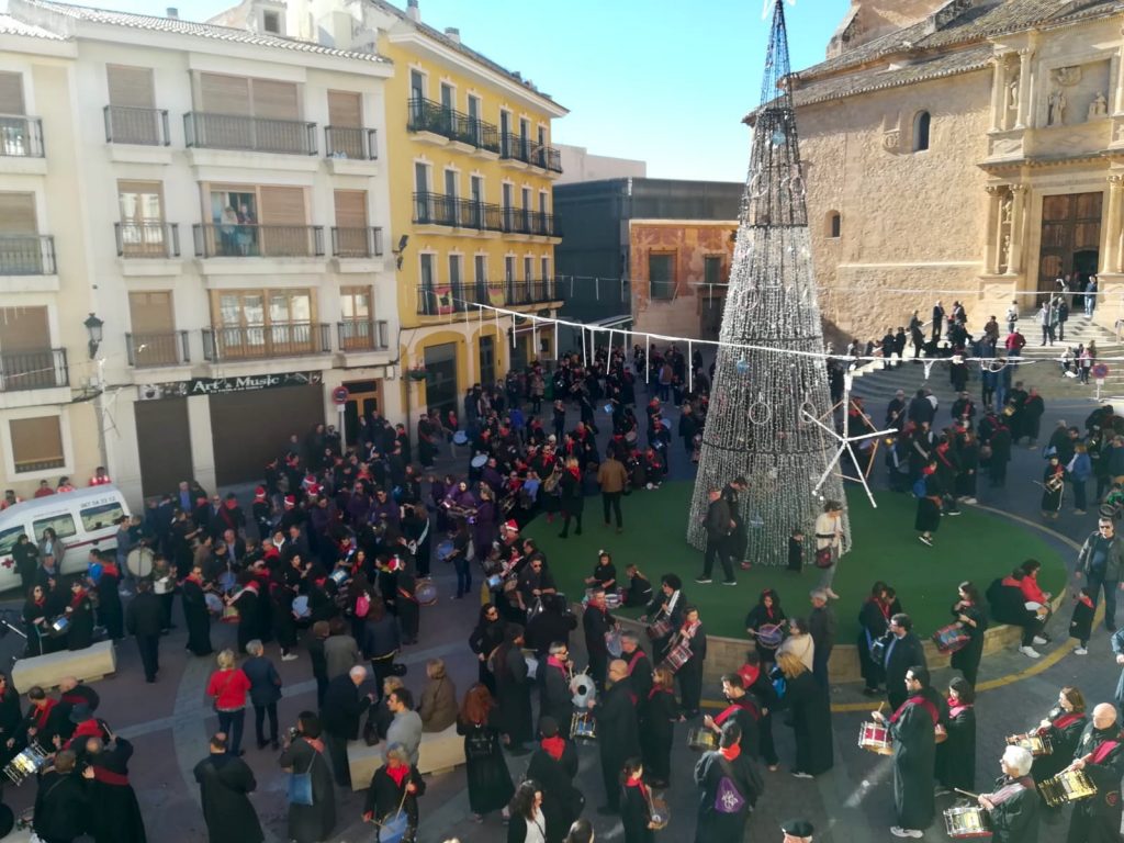 Tal como estaba anunciado, al mediodía de hoy, más de 300 tamborileros ataviados con túnica negra y pañuelo al cuello, se concentraban en la Plaza de la Iglesia de Hellín, para festejar la designación, por parte de la Unesco, de sus tamboradas como Patrimonio Inmaterial de la Humanidad.