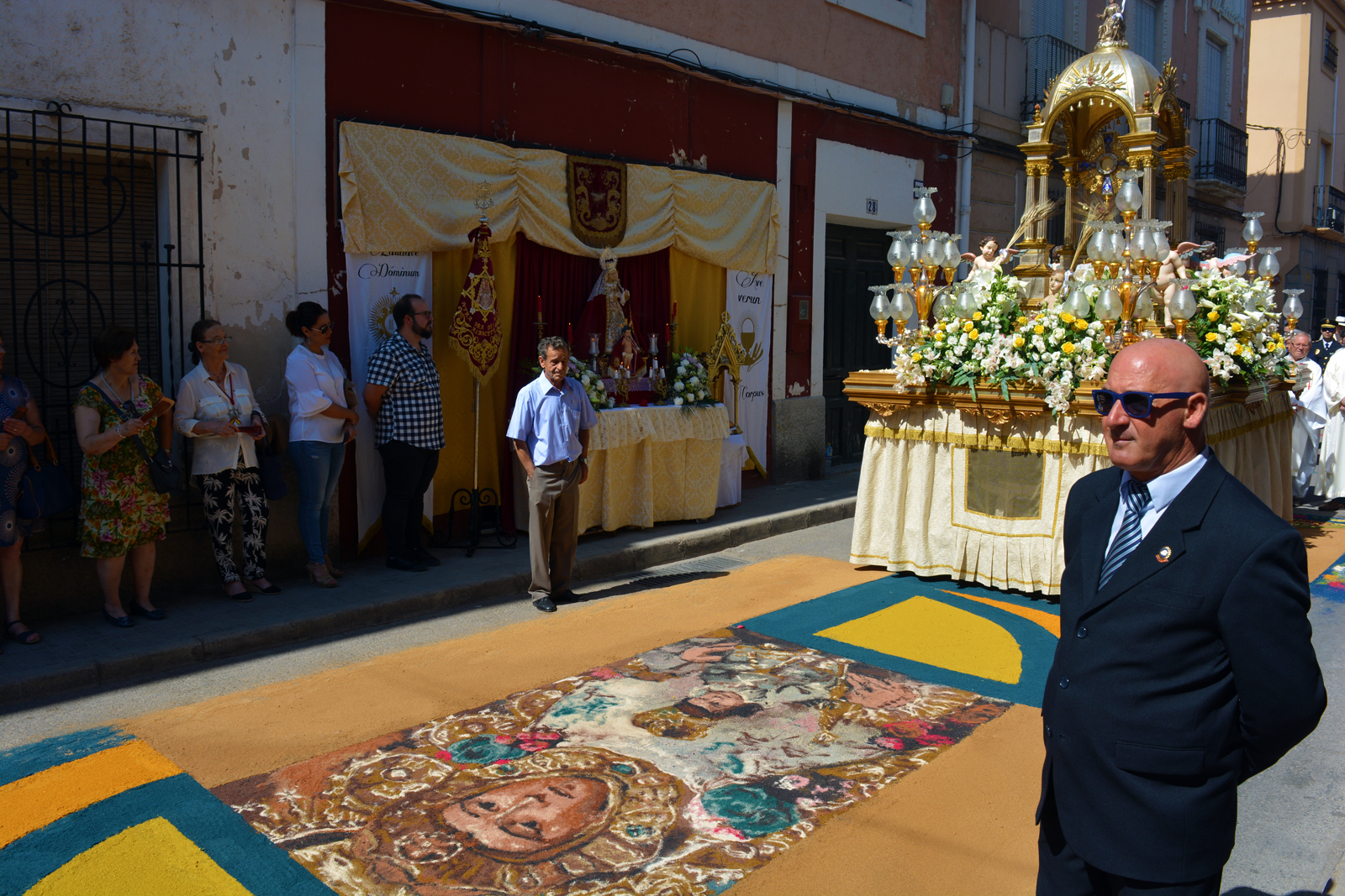 Alrededor de 30 grupos llevaron a cabo en la madrugada del pasado domingo el laborioso trabajo de realizar las alfombras del Corpus Christi que engalanaron las calles y plazas por donde transcurrió la procesión unas horas después.