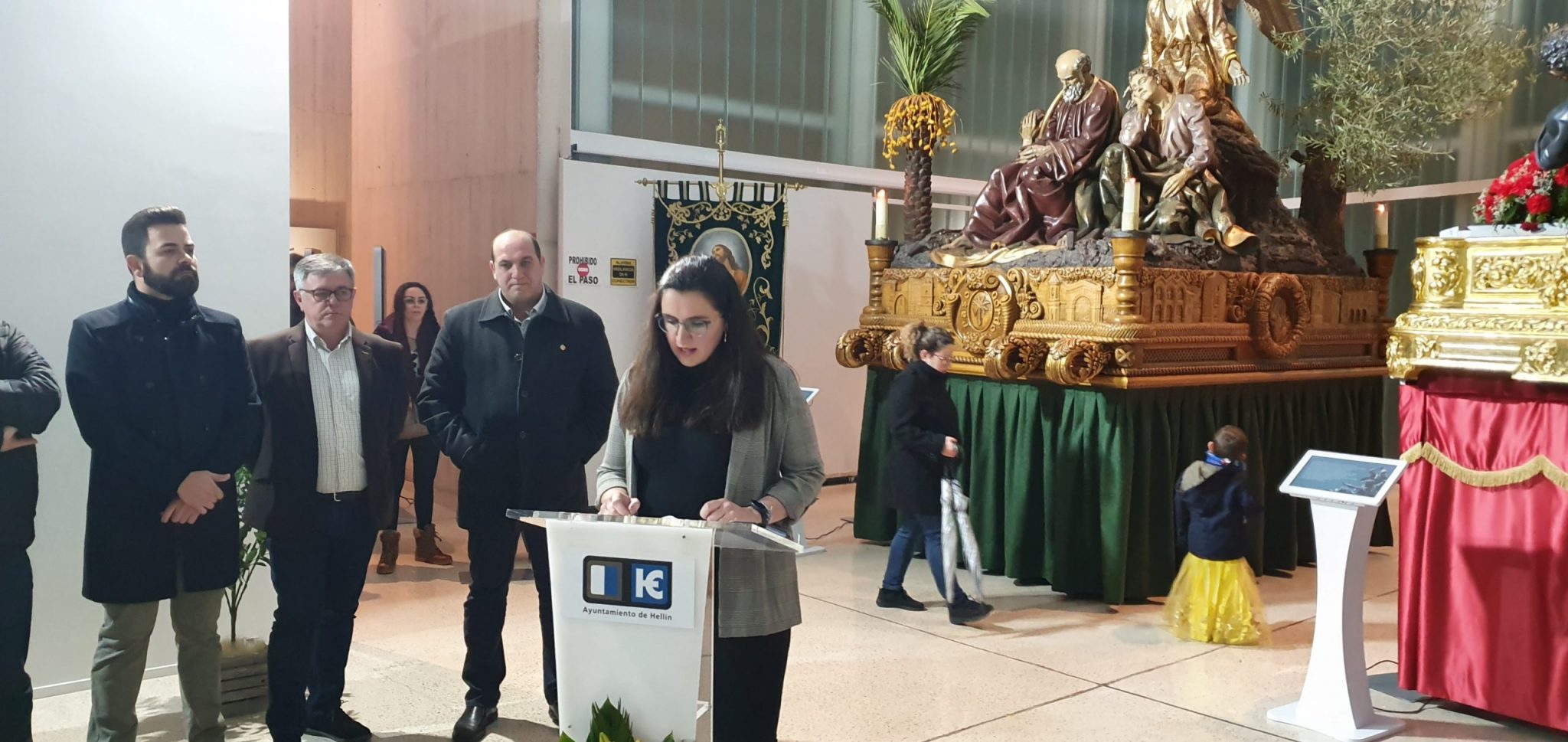 Durante el acto, fue la vicepresidenta, Amelia García Castillo, la encargada de explicar el contenido de la muestra, teniendo un recuerdo con todos los presidentes y componentes de la Hermandad que han trabajado en todos estos años a favor del colectivo, así como con todos los hellineros que en su día colaboraron económicamente para encargar el grupo escultórico a Coullaut Valera. Entre todos los objetos que se muestran está listado con los nombres de los 210 donantes que aportaron el total de 41.000 pesetas que costó aquel encargo.