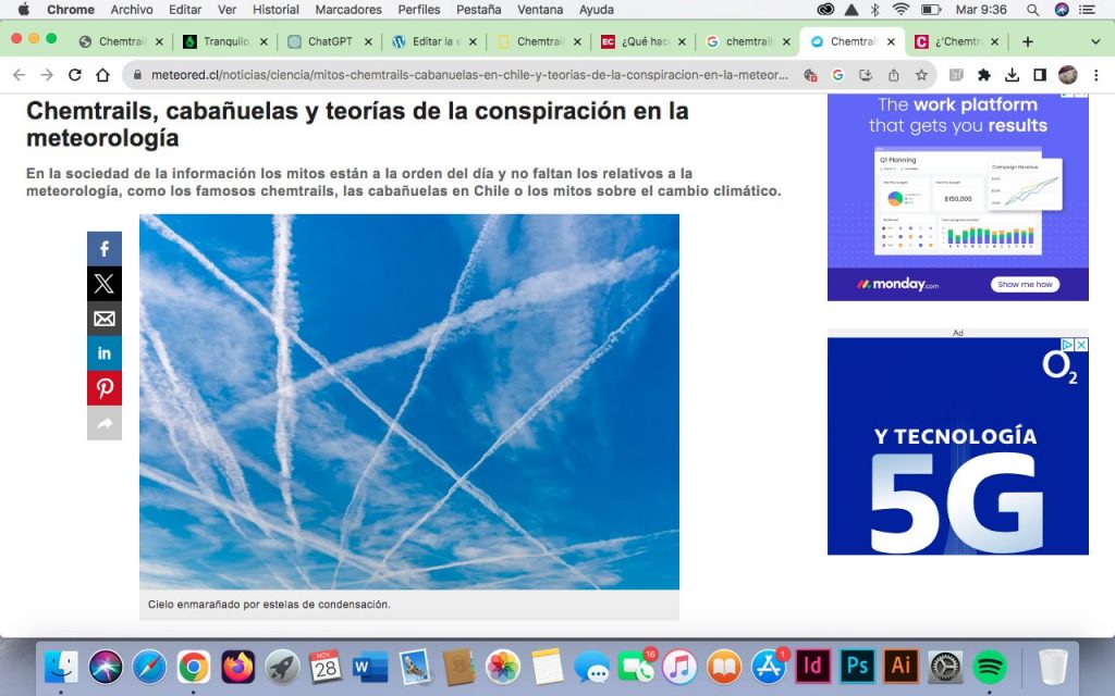 La teoría de los “chemtrails” sugiere que las estelas dejadas por los aviones son, de hecho, fumigaciones químicas destinadas a afectar la salud humana o modificar el clima. Sin embargo, queremos destacar que esta teoría carece de base científica y ha sido desmentida por expertos en meteorología y aviación.