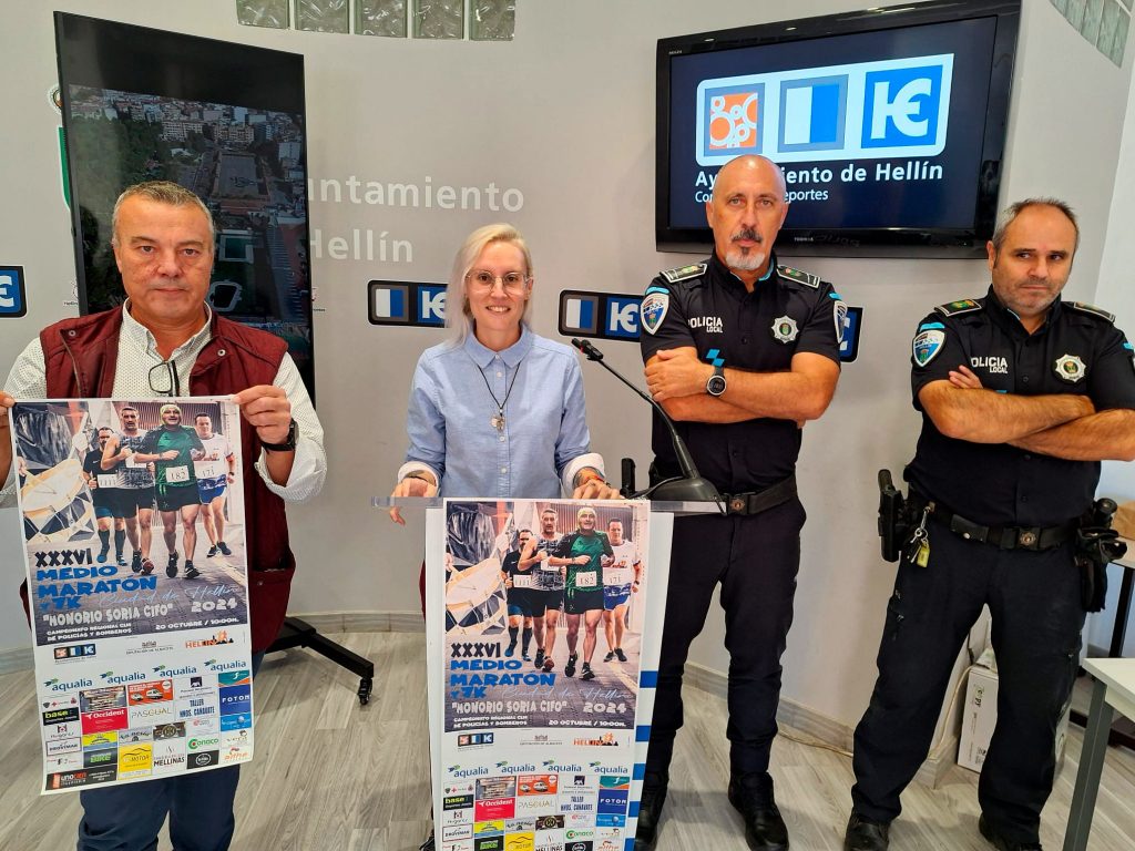 El próximo domingo, día 20, del presente mes de octubre, se llevará a cabo la XXXVI edición de la Media Maratón “Honorio Soria Cifo”, que fue presentada este jueves con la presencia de la concejala de Deportes, Miriam Maestre, a la que acompañaban el Jefe de la Policía Local, Francisco José Paterna, y el presidente del Club de Atletismo Hellín, Antonio Pérez.