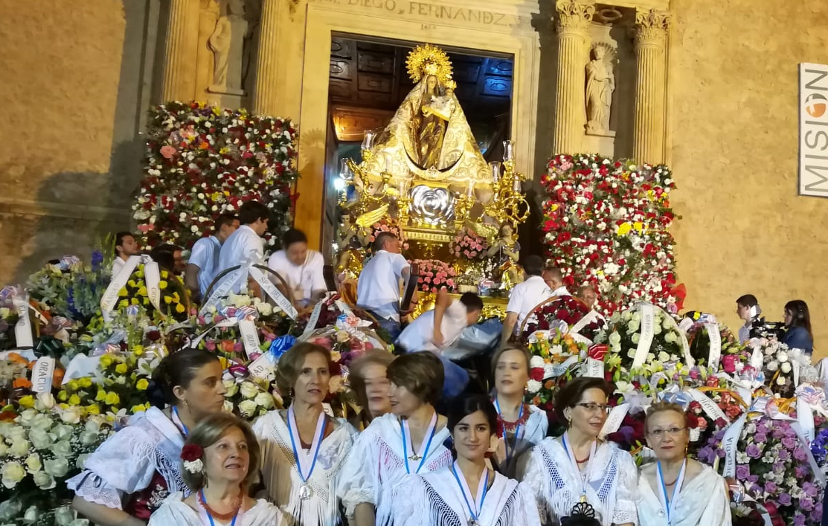 Ya el jueves, día 31, aniversario de la Coronación, la Iglesia de la Asunción, engalanada con las miles de docenas de flores ofrecidas por los fieles el día anterior, magníficamente colocadas durante toda la noche por los voluntarios, recibía al Obispo de la Diócesis, para concelebrar la misa; para culminar los actos con la brillante procesión de retorno de la imagen a su Camarín del Santuario del Rosario.