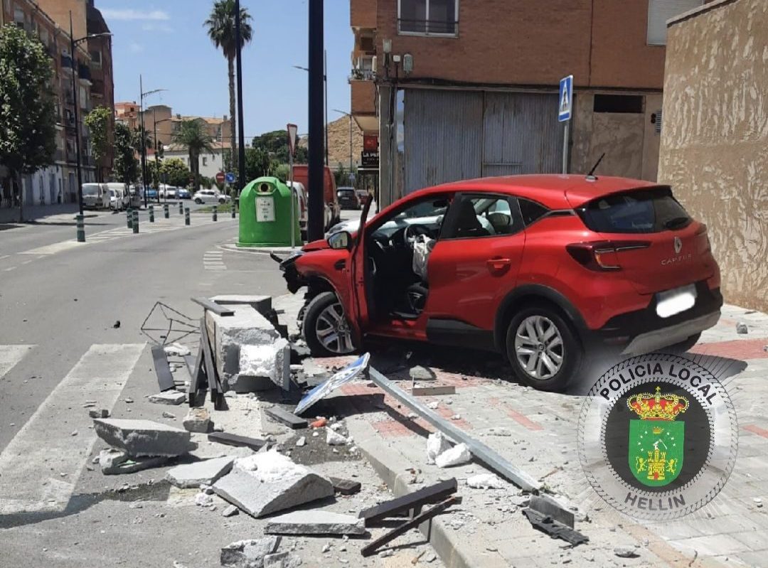 Ayer por la tarde, la Policía Local de Hellín intervino en un nuevo accidente de tráfico ocurrido en la calle Poeta Mariano Tomás, donde un vehículo turístico colisionó contra una farola, causando importantes daños materiales. Afortunadamente, no se registraron víctimas personales de gravedad.