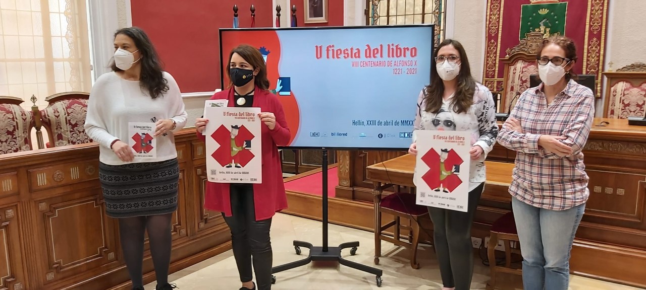 Las concejalas del Cultura y Juventud, Fabiola Jiménez y María Dolores Vizcaíno, acompañadas por, Puri Roldán, en representación del Centro Joven y Sandra Cánovas, como portavoz de la Red de Bibliotecas de Hellín, daban todo tipo de explicaciones del contenido cultural que va a llevarse a cabo el día 13 del presente mes con motivo de la V Fiesta del Libro y que estará dedicado al VIII centenario del nacimiento de Alfonso X de Castilla “El Sabio”.