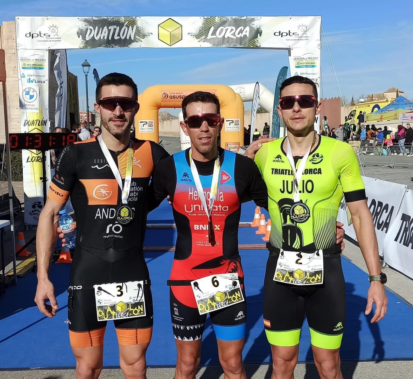 En la categoría masculina, la competición estuvo intensamente disputada, culminando en un emocionante sprint final que llevó al hellinero Rafael López Hemorsilla, del CT Murcia Unidata, a la victoria. López cruzó la línea de meta con un tiempo de 1 hora, 26 minutos y 23 segundos, asegurando su primer lugar en el podio. La segunda posición fue para Sergio Andrés Ortega, representante del CT Arabí Yecla, quien registró un tiempo de 1 hora, 26 minutos y 25 segundos. La tercera posición fue ocupada por Julio Alberto Ponce, del Club Triatlón Lorca, con un tiempo de 1 hora, 27 minutos y 3 segundos.
