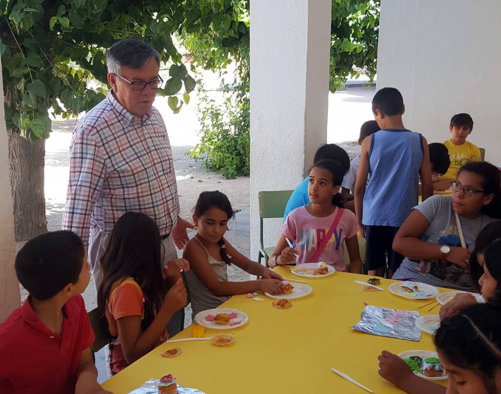 Durante la visita participaron con los niños, que estaban realizando un tallere de cocina fría, en la elaboración de Cupcakes, y aprovechando la ocasión para felicitar a las monitoras por la labor que desempeñan.
