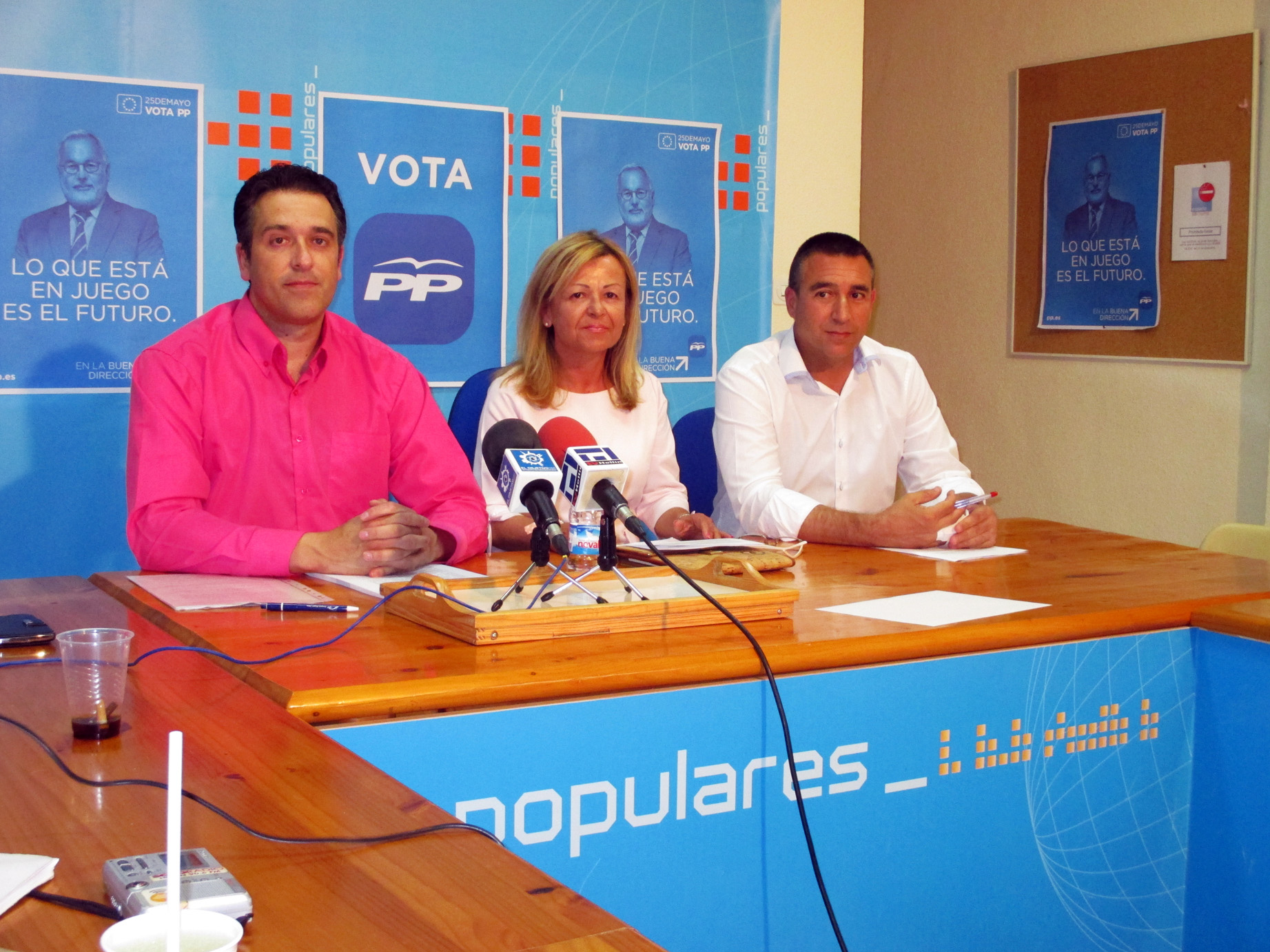 En la sede del PP Juan Antonio Moreno, Alejandro Fajardo y Covadonga López, mantenían un nuevo contacto con los informadores, para ir, como adelantaba el concejal de Economía y Hacienda, desgranando el programa presentado por su partido para estas elecciones europeas.